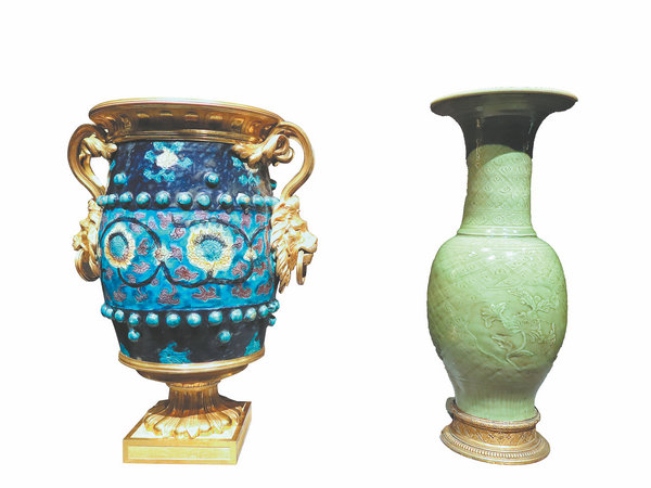 Chinese porcelains mounted with Western-style decorations from the Versailles collection. [Photo by JIANG DONG/CHINA DAILY]