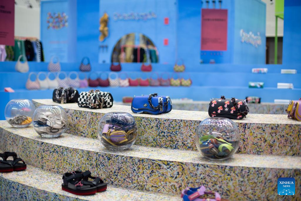 This photo taken on April 12, 2024 shows a view of the exhibition area of fashion and life at the Hainan International Convention and Exhibition Center, the main venue for the upcoming fourth China International Consumer Products Expo, in Haikou, south China's Hainan Province. The fourth China International Consumer Products Expo will open on Saturday in Haikou, the capital city of south China's Hainan Province.
