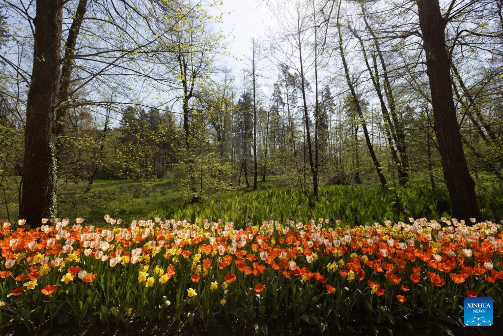 Tulips are seen at the Volcji Potok Arboretum near Kamnik, Slovenia, April 12, 2024. The traditional exhibition of spring flowers and tulips at the Volcji Potok Arboretum of Slovenia was marked by the bustle of people and the colorful palette of flowers. (Photo by Zeljko Stevanic/Xinhua)