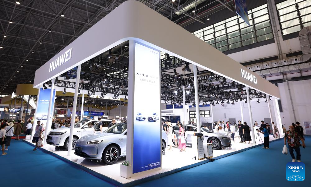 This photo taken on April 14, 2024 shows the booth of Huawei at the fourth China International Consumer Products Expo (CICPE) in Haikou, capital city of south China's Hainan Province. A batch of domestic brands have attracted a lot of visitors at the expo. (Xinhua/Yang Guanyu)