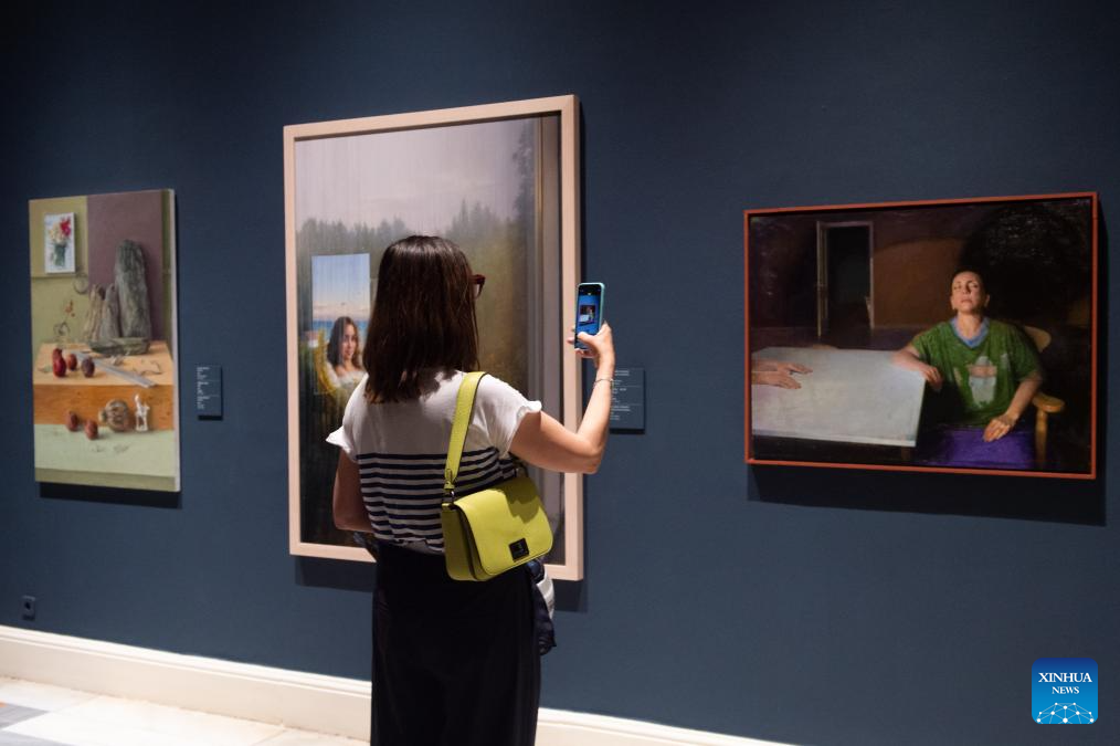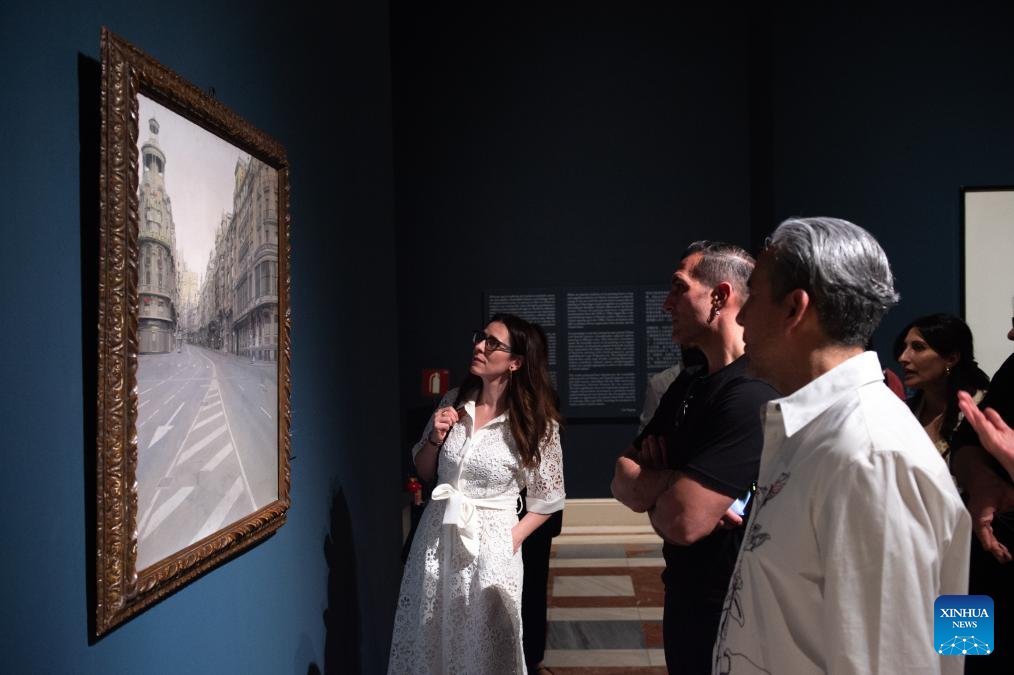 Visitors view an exhibition featuring contemporary oil paintings from China and Spain at Palacio Real, in Madrid, Spain, on April 12, 2024. (Photo by Gustavo Valiente/Xinhua)