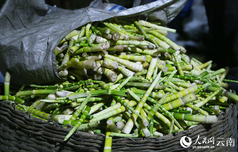 Photo shows newly harvested bamboo shoots of Qiongzhu, a bamboo variety, in Daguan county, Zhaotong city, southwest China's Yunnan Province. (Photo/He Guihua)