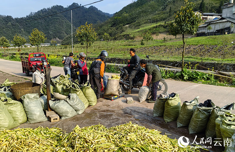 Dealers buy bamboo shoots of Qiongzhu, a bamboo variety, in Daguan county, Zhaotong city, southwest China's Yunnan Province. (Photo/He Guihua)