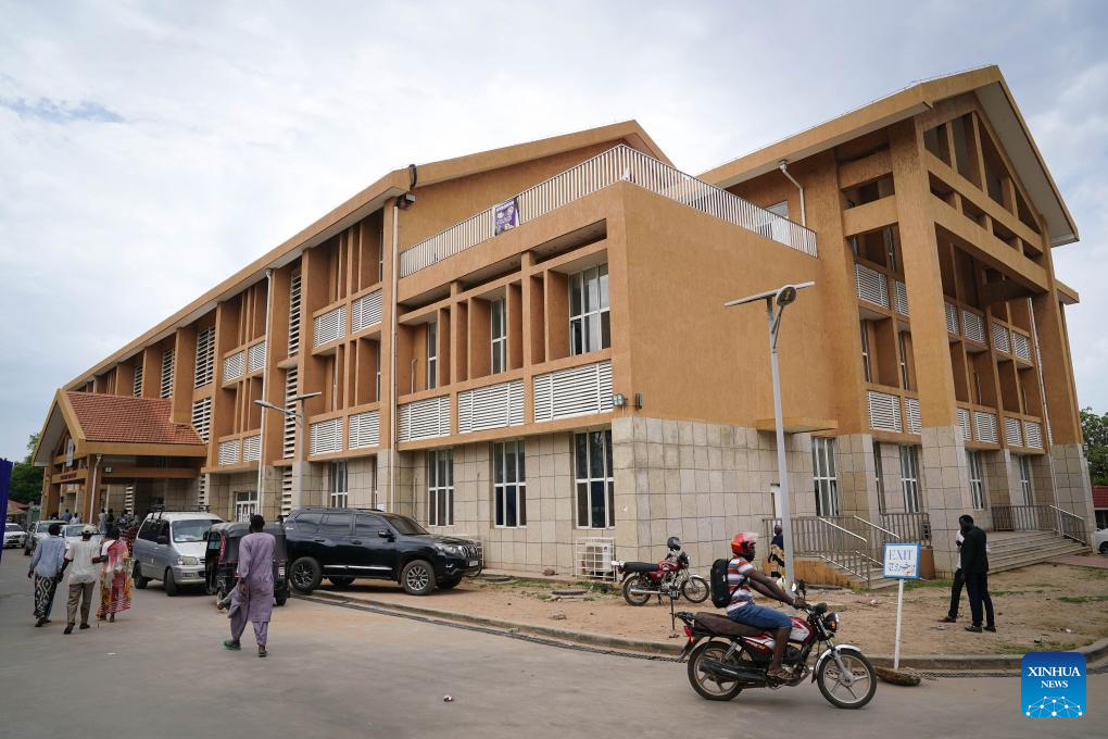This photo taken on April 11, 2024 shows the China-aided Juba Teaching Hospital in Juba, South Sudan. The 11th batch of Chinese medical team to South Sudan has been providing medical services at the Juba Teaching Hospital since September 2023. As of early April, 2024, the medical team had provided 6,873 outpatient and emergency services, completed 82 surgeries, organized six free treatment event, and provided professional training for over 1,100 local medical personnel. (Xinhua/Han Xu)