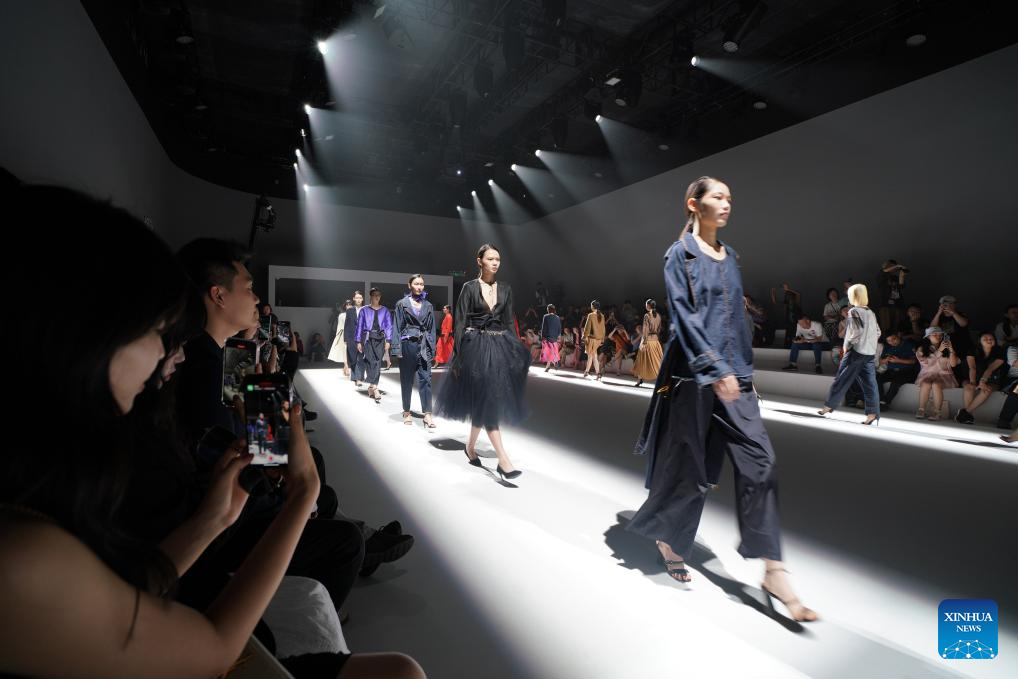 Models present creations during a fashion show at the fourth China International Consumer Products Expo (CICPE) in Haikou, capital city of south China's Hainan Province, April 15, 2024. The Expo, which started Saturday and lasts till April 18, is China's only national-level exhibition featuring consumer products and also the largest consumer expo in the Asia-Pacific region. (Xinhua/Yang Guanyu)