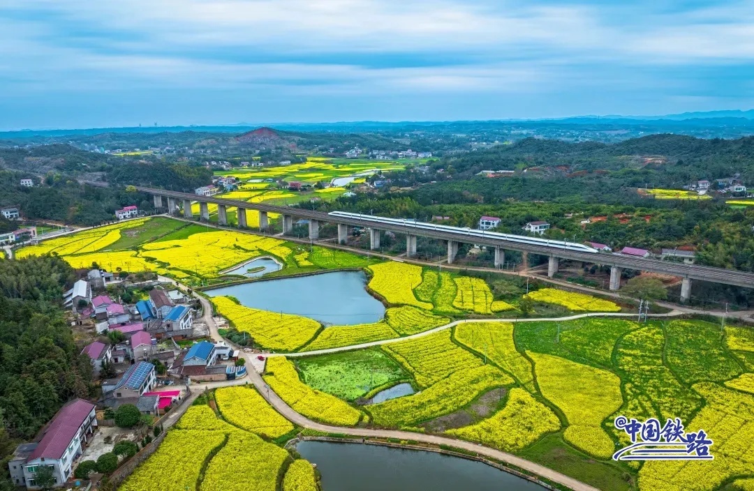 Vast expanses of rapeseed fields have turned into enchanting seas of gold in many regions across China, especially central China's Hunan Province and south China's Guangdong Province, creating breathtaking scenes that bring immense pleasure to passengers traveling by train.