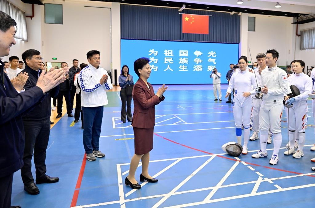Shen made the remarks during her inspection of the training bases of China's fencing and shooting teams in Beijing on Wednesday. She learned about the teams' Olympic preparations and held talks with representatives of athletes, coaches, and staff.