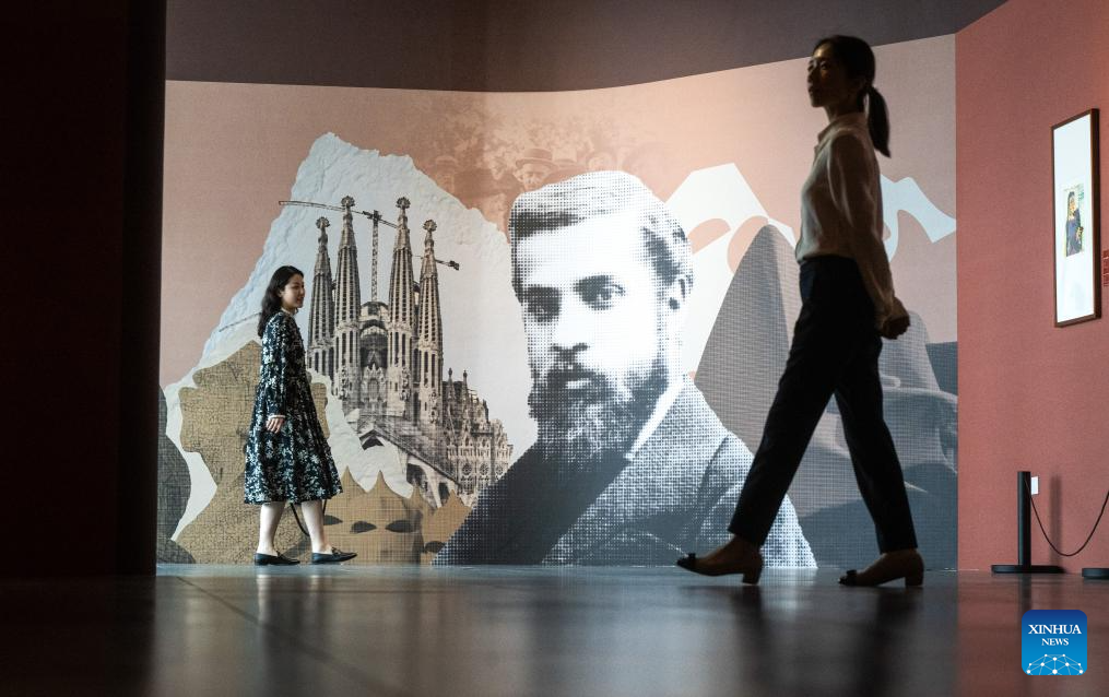 People visit an exhibition titled "Gaudi: Moment is Eternity" in Wuhan, central China's Hubei Province, April 18, 2024. Opened here on Thursday, the exhibition will last until October 20. (Xinhua/Hu Jingwen)