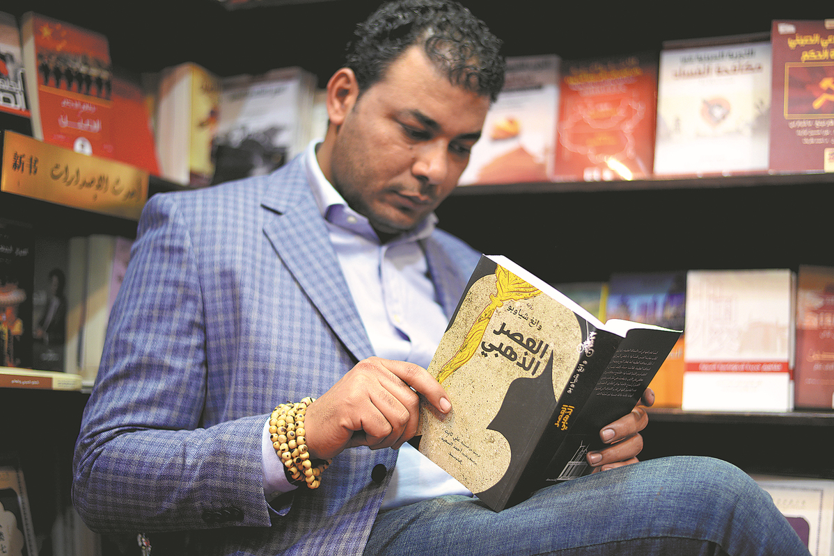 Ahmed Elsaid reads some Chinese literature that has been translated into Arabic. CHINA DAILY