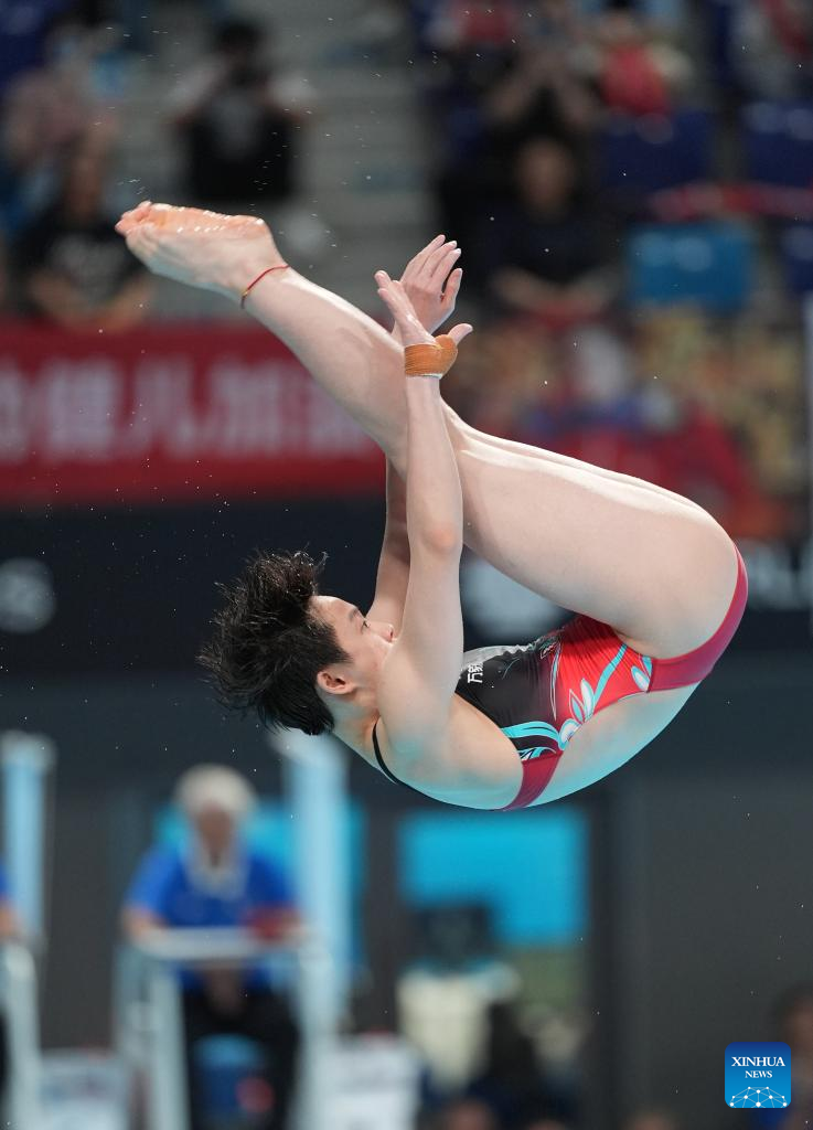 Chen Yiwen of China competes during the mixed 3m &10m team final at the World Acquatics Diving World Cup 2024 Super Final Stop 1 in Xi'an, northwest China's Shaanxi Province, April 19, 2024. (Xinhua/Li Yibo)