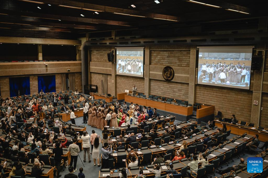NAIROBI, April 19 (Xinhua) -- The United Nations Office in Nairobi (UNON) and the Chinese Embassy in Kenya celebrated UN Chinese Language Day on Friday with a vibrant event. The ceremony featured traditional music from the instrument orchestra of east China's Nanjing University and was attended by senior UN officials, diplomats, students and faculty members from local universities.