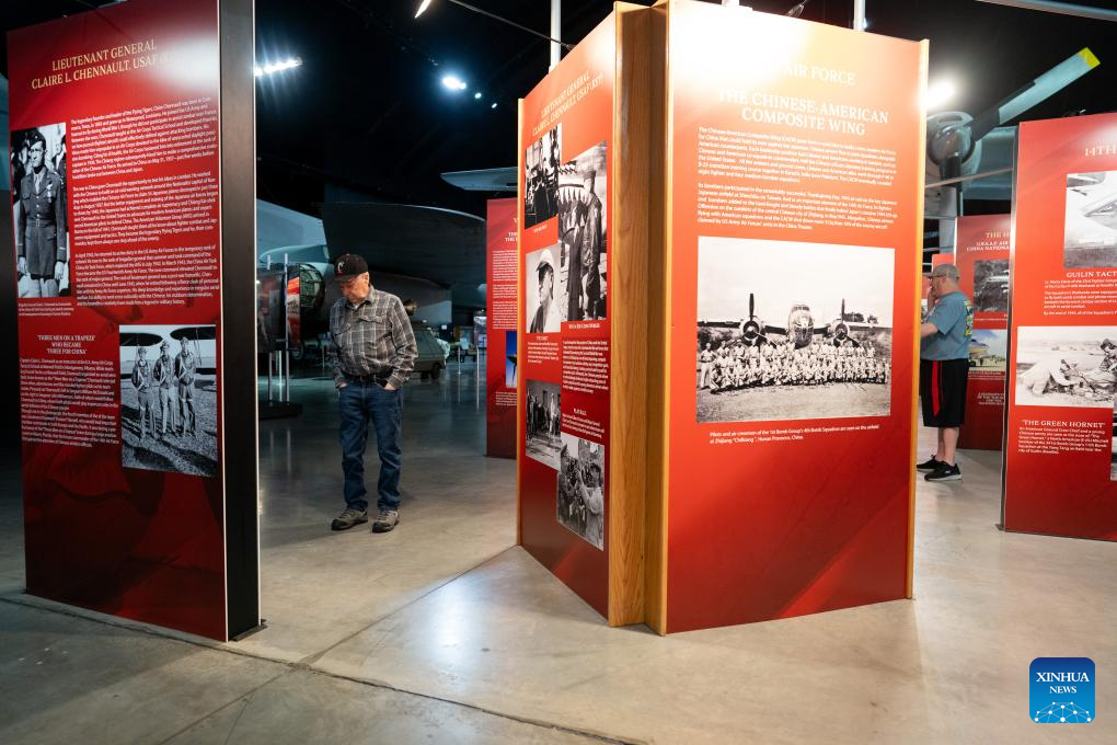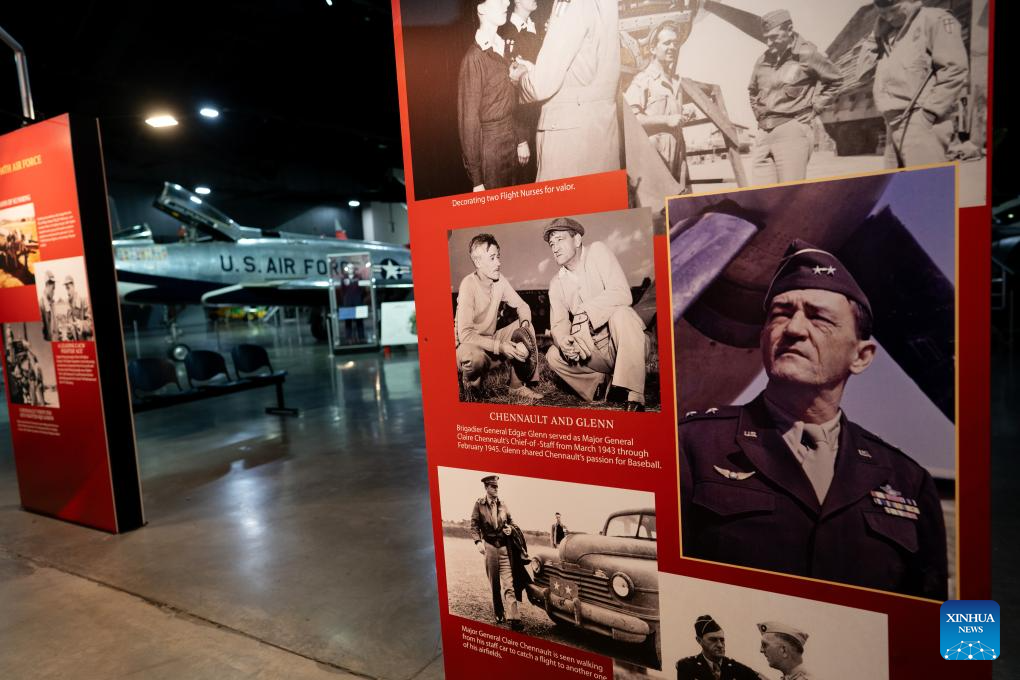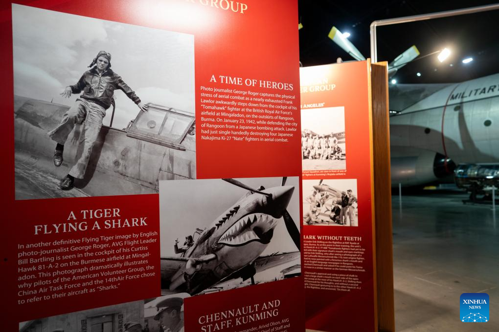 A photo exhibition commemorating the Flying Tigers and Doolittle Raiders, Americans who fought Japan in World War II in cooperation with the Chinese people, is held at the National Museum of the U.S. Air Force in Dayton, Ohio, the United States, April 18, 2024. The half-year-long exhibition recounts the stories of the Flying Tigers and Doolittle Raiders with around 100 photos and detailed narrations. (Xinhua/Liu Jie)
