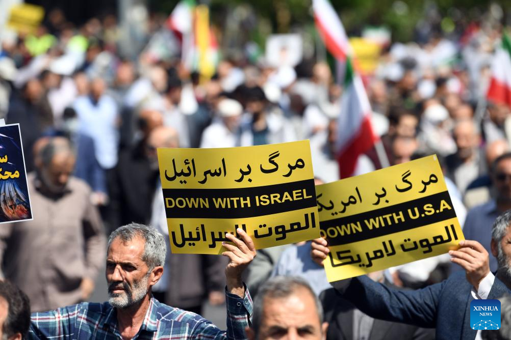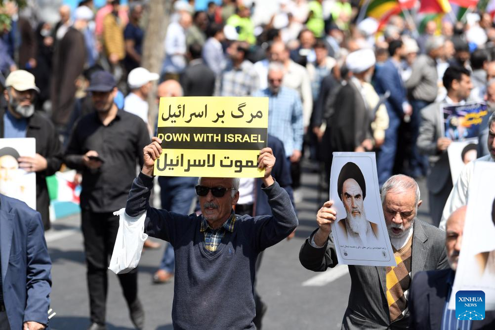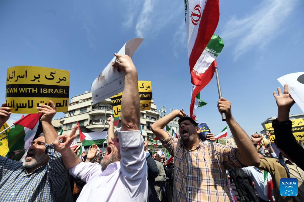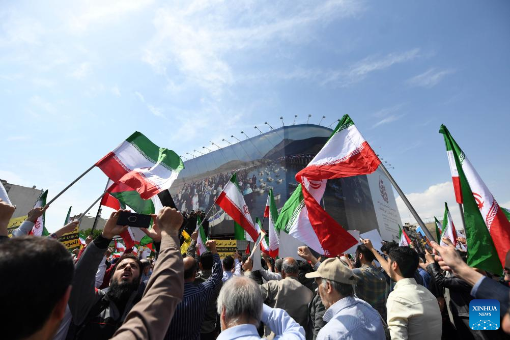 TEHRAN, April 19 (Xinhua) -- Iranians on Friday staged nationwide rallies to express support for the country's retaliatory strikes against Israeli targets last week, the official news agency IRNA reported.