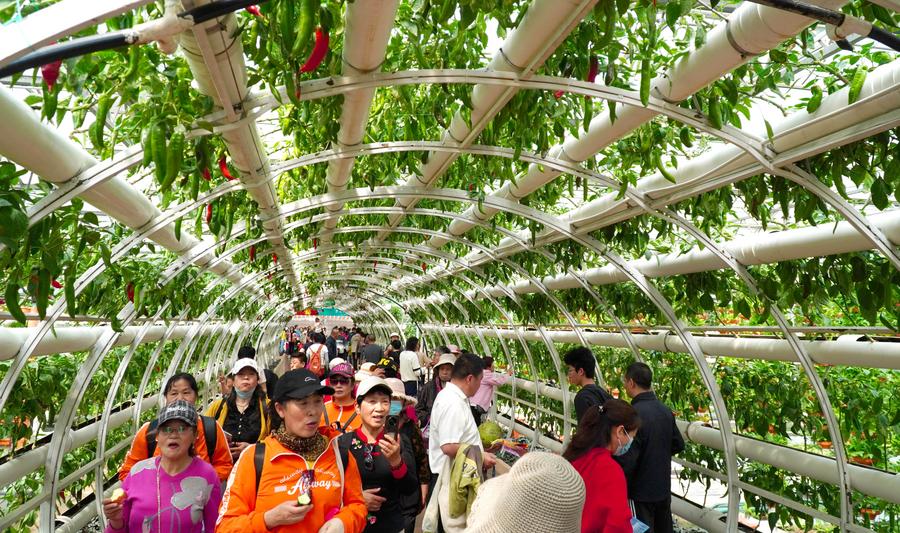 People visit the 25th China (Shouguang) International Vegetable Science and Technology Expo in Shouguang, east China's Shandong Province, April 21, 2024.(Xinhua/Xu Suhui)