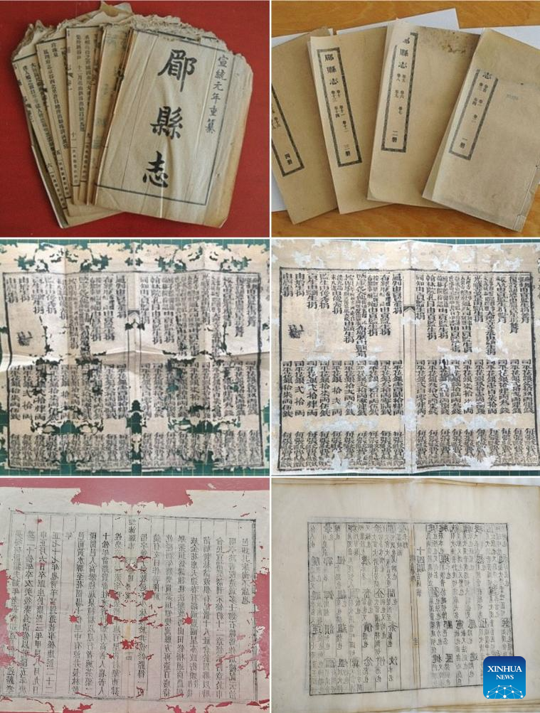 This combo file photo provided by the library of Jilin University shows the comparison of some ancient books before and after restoration. (Xinhua)