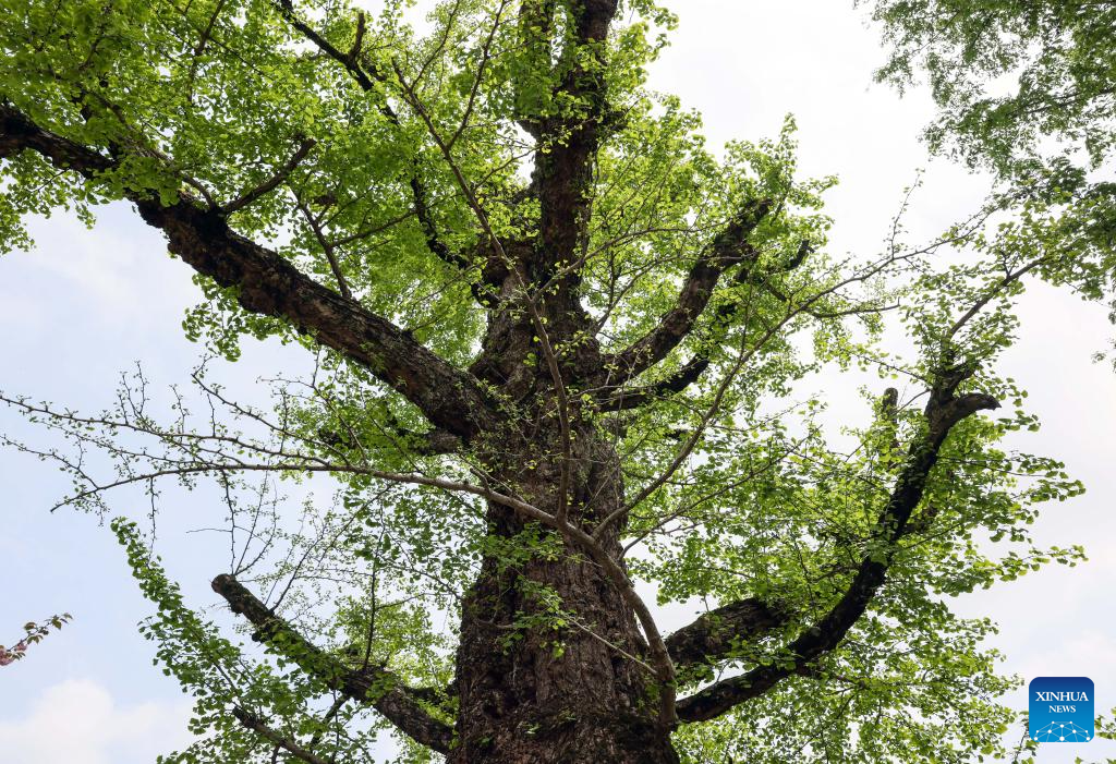A 500-year-old ginkgo tree is seen at a scenic area in Luting Township, Yuyao City, east China's Zhejiang Province, April 13, 2024. (Xinhua/Lan Hongguang)