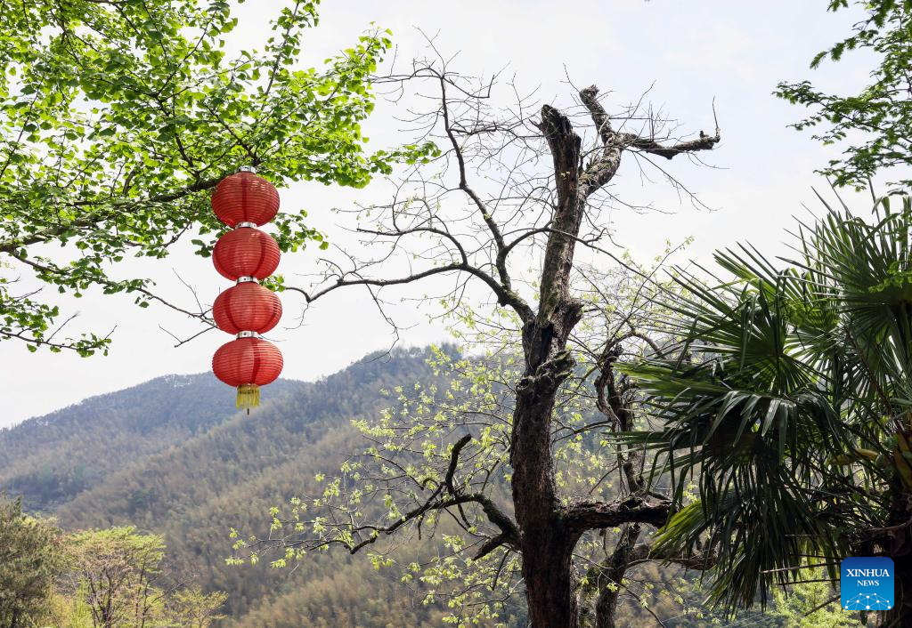 A 500-year-old persimmon tree is seen at a scenic area in Luting Township, Yuyao City, east China's Zhejiang Province, April 13, 2024. (Xinhua/Lan Hongguang)