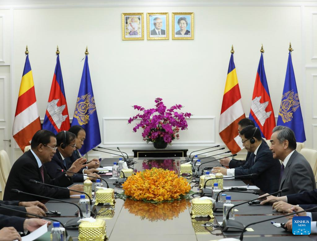 PHNOM PENH, April 23 (Xinhua) -- Visiting Chinese Foreign Minister Wang Yi has said that building the China-Cambodia community with a shared future has entered a new era of high level, high quality, and high standard.