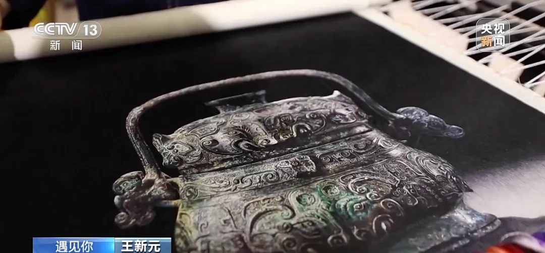 His pursuit of authenticity drove him to spend three months visiting museums, studying bronze artifacts to understand how to translate their aged quality and capture their sense of vicissitudes into his embroidery using color layering and thread thickness adjustments.
