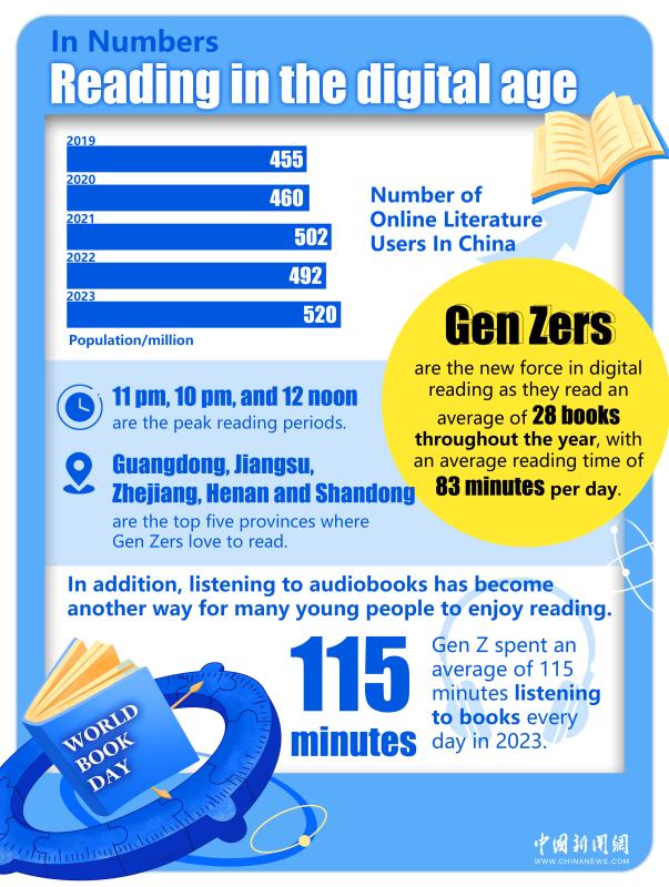 Gen Zers are the new force in digital reading as they read an average of 28 books throughout the year, with an average reading time of 83 minutes per day.