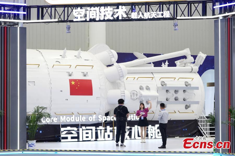 A core module of a space station attracts media attention on an exhibition to celebrate the Space Day of China in Wuhan, Central China's Hubei Province, April 23, 2024. (Photo: China News Service/Cui Nan)