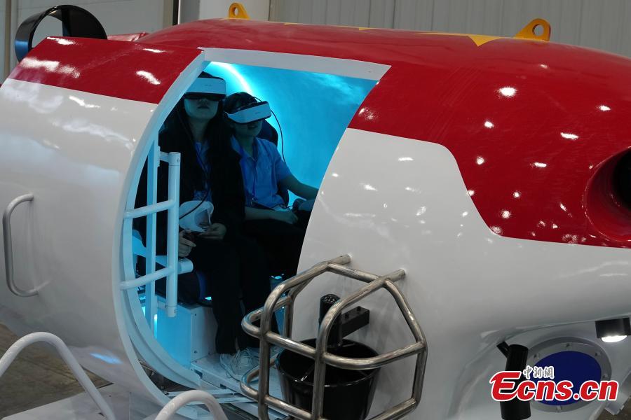 Volunteers experience deep-sea themed VR equipment on an exhibition to celebrate the Space Day of China in Wuhan, Central China's Hubei Province, April 23, 2024. (Photo: China News Service/Cui Nan)
