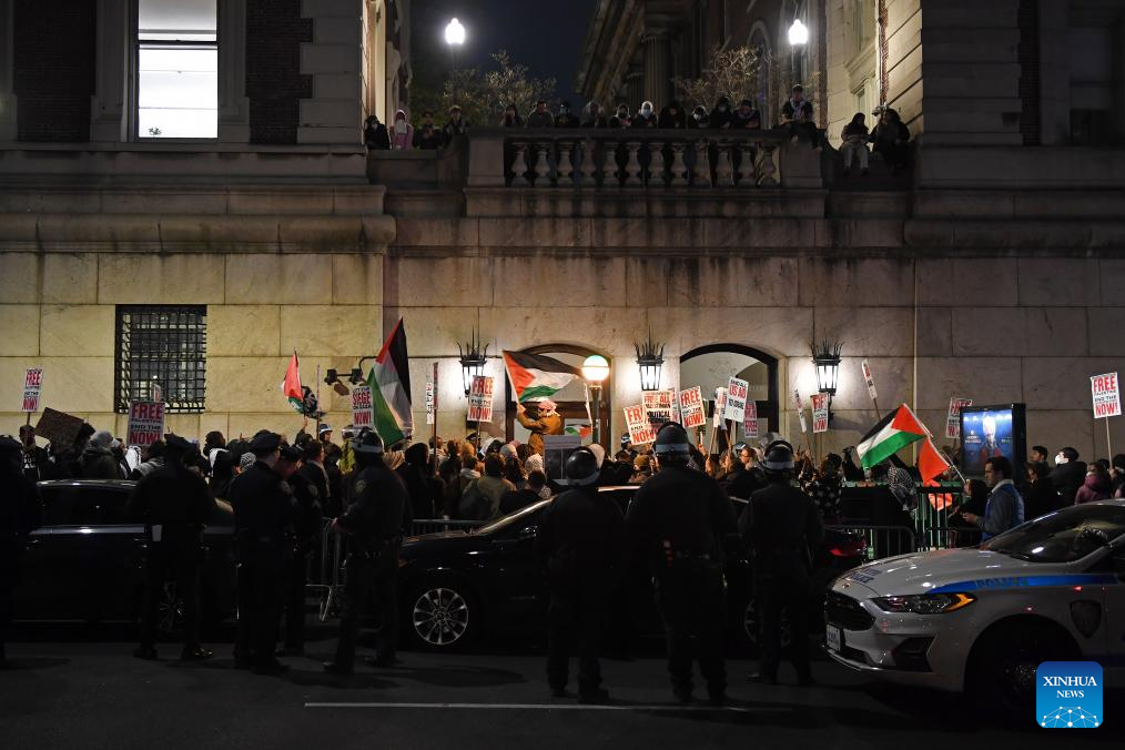 NEW YORK, April 24 (Xinhua) -- Columbia University, amidst an eighth day of tense demonstrations, said on Wednesday that it has extended negotiations with student activists regarding the dismantling of a pro-Palestinian encampment.