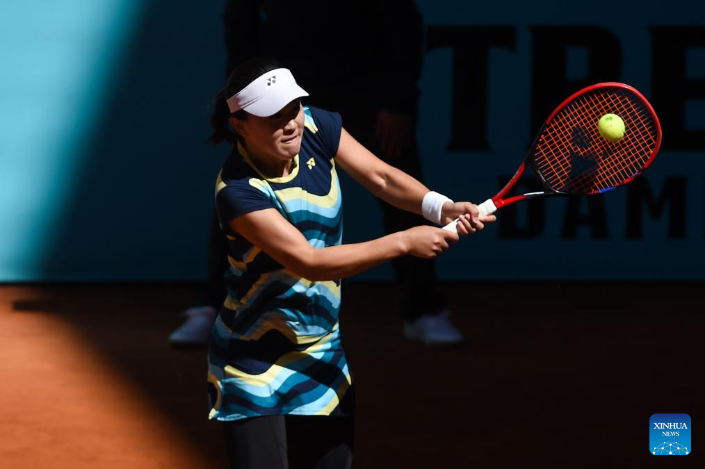 MADRID, April 24 (Xinhua) -- Wang Xinyu produced a brave fightback to win her first round match at the Mutua Madrid Open tennis tournament on Wednesday.
