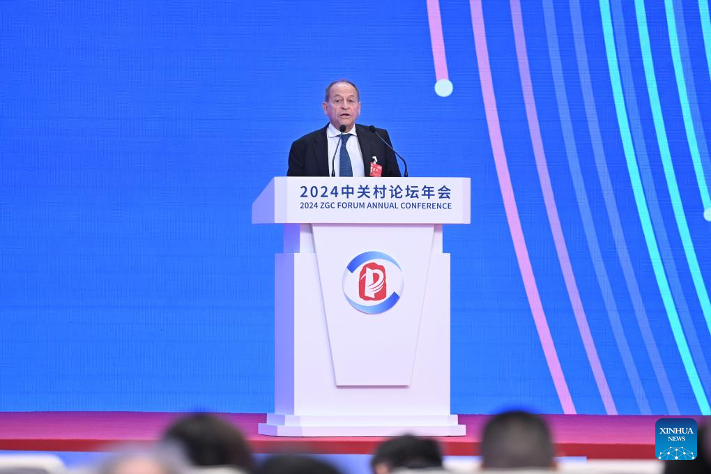 Stephen Perry, president emeritus of Britain's 48 Group Club, speaks at the 2024 Zhongguancun Forum (ZGC Forum) Annual Conference in Beijing, capital of China, April 25, 2024. (Xinhua/Li Xin)