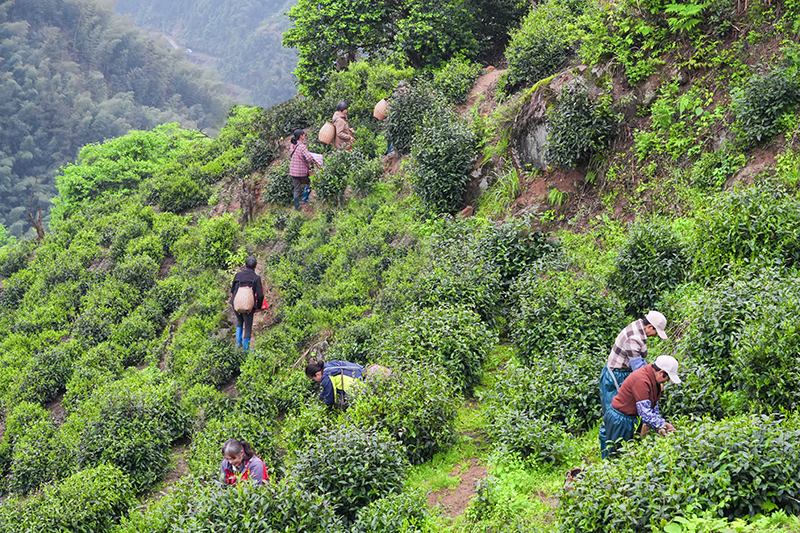 The township has built several standard tea production lines and adopted a business model that features cooperation among companies, cooperatives, growing bases, and farmers.