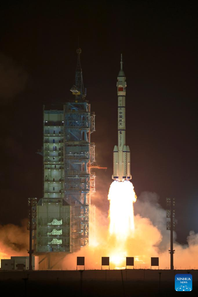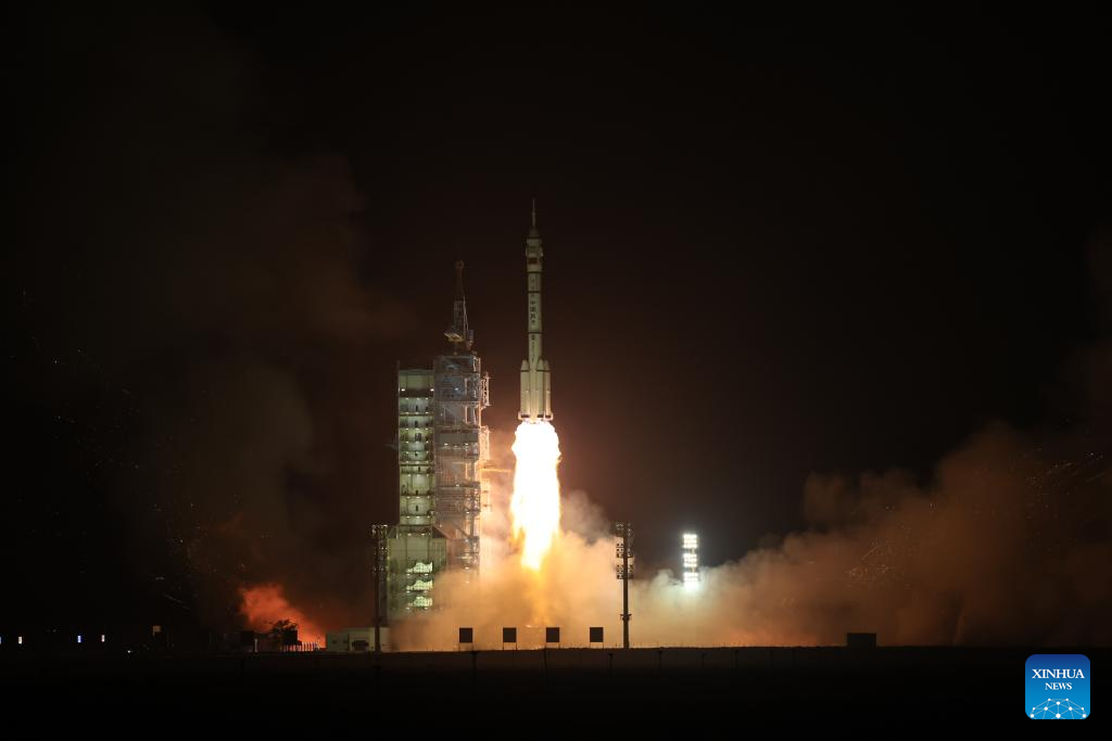 The Shenzhou-18 manned spaceship, atop a Long March-2F carrier rocket, is launched from the Jiuquan Satellite Launch Center in northwest China, April 25, 2024. (Xinhua/Lian Zhen)
