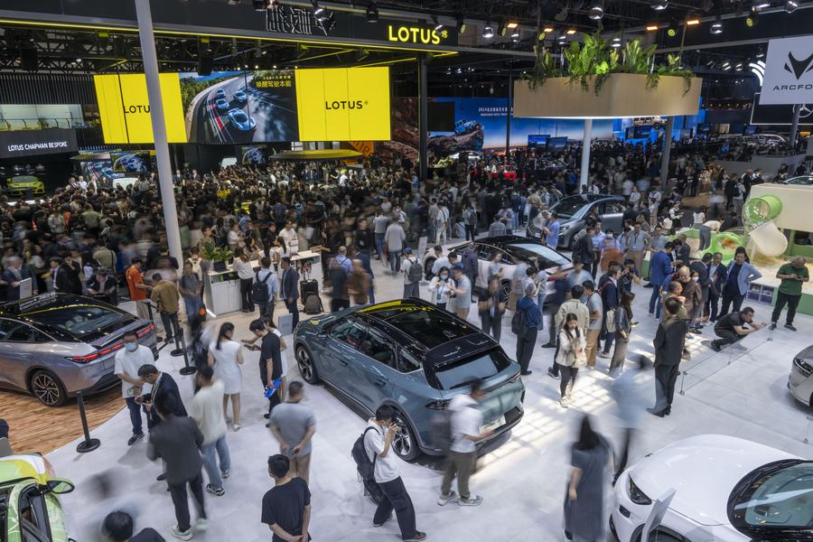 People visit the 2024 Beijing International Automotive Exhibition in Shunyi District, Beijing, capital of China, April 25, 2024. The exhibition opened here on Thursday and will last till May 4. (Xinhua/Cai Yang)