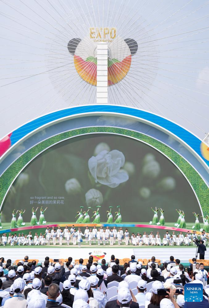 This photo taken on April 26, 2024 shows the opening ceremony of the International Horticultural Exhibition 2024 Chengdu in Chengdu, southwest China's Sichuan Province. (Xinhua/Jiang Hongjing)