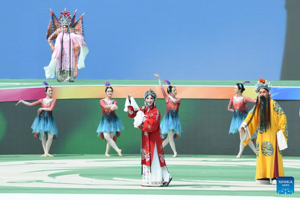 This photo taken on April 26, 2024 shows a performance at the opening ceremony of the International Horticultural Exhibition 2024 Chengdu in Chengdu, southwest China's Sichuan Province. (Xinhua/Xu Bingjie)