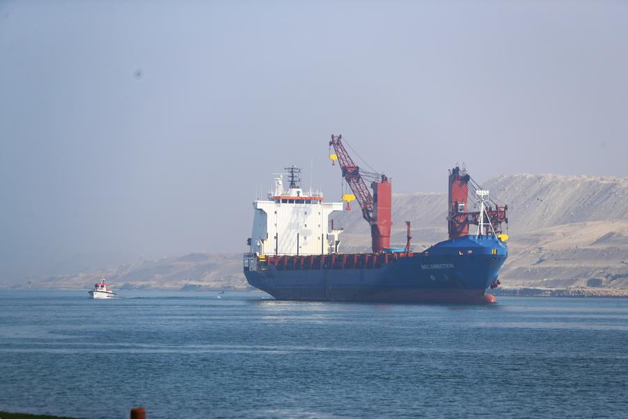 A vessel is seen on the Suez Canal in Ismailia Province, Egypt, on Jan. 3, 2022. (Xinhua/Ahmed Gomaa)