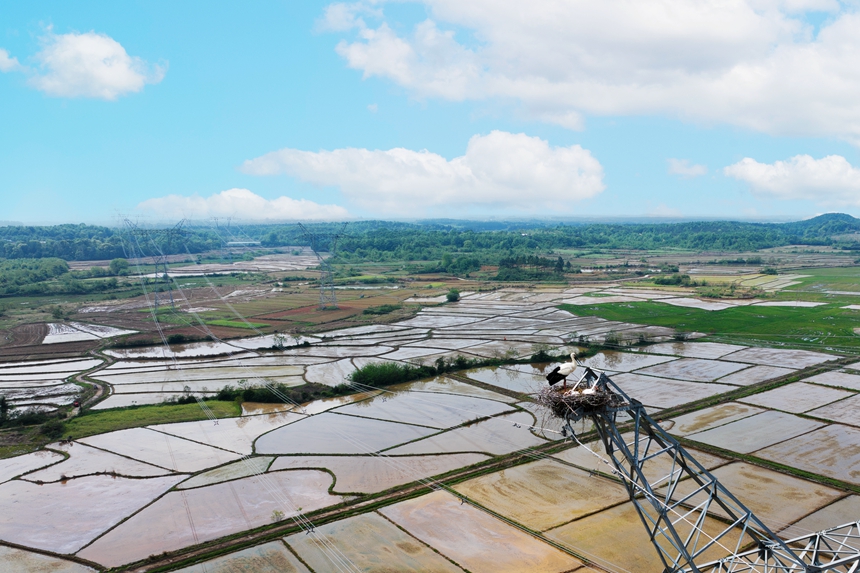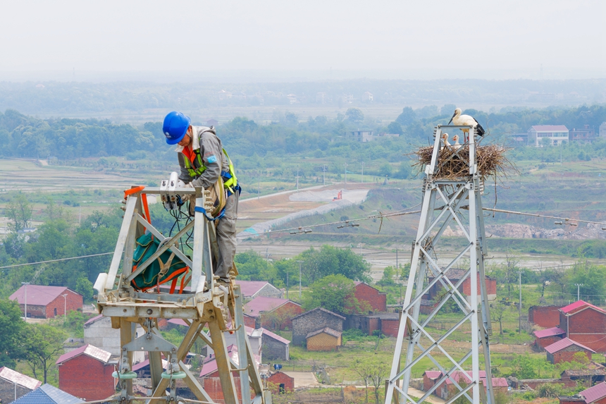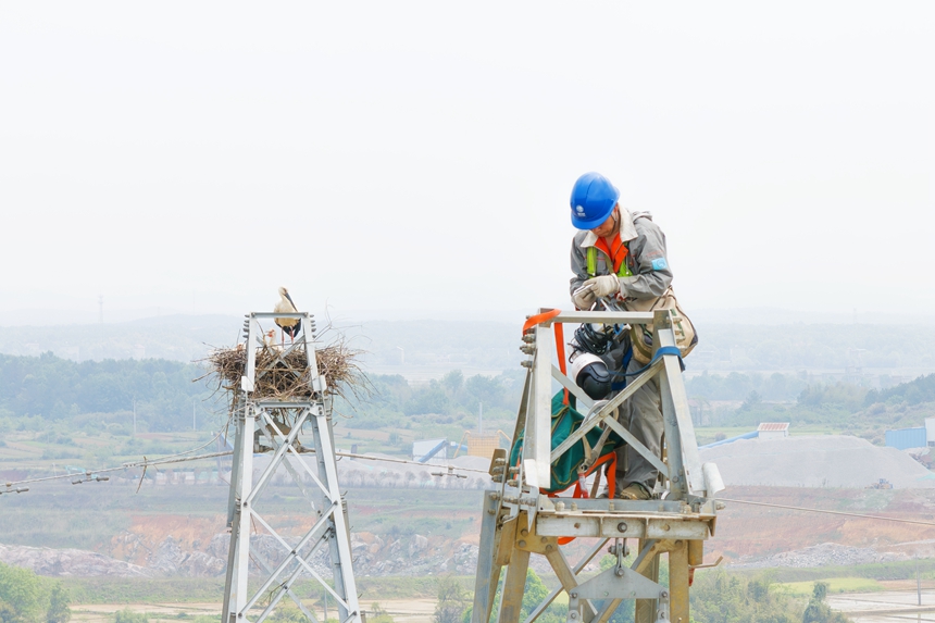 State Grid Jiangxi Electric Power Co., Ltd., a subsidiary of the State Grid Corporation of China, carried out the initiative after staff members recently discovered nests of migratory birds atop pylons carrying 500-kilovolt power lines in Jinxian county, Nanchang city.