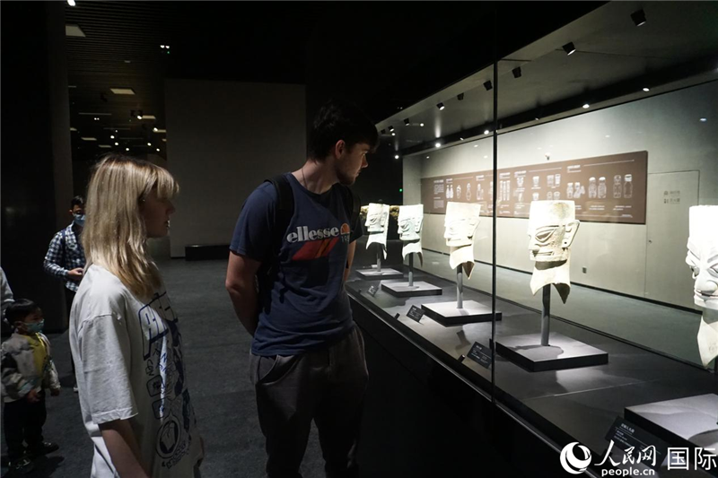 Andrey (right) visits the Sanxingdui Museum. (People's Daily Online/Wang Yuheng)