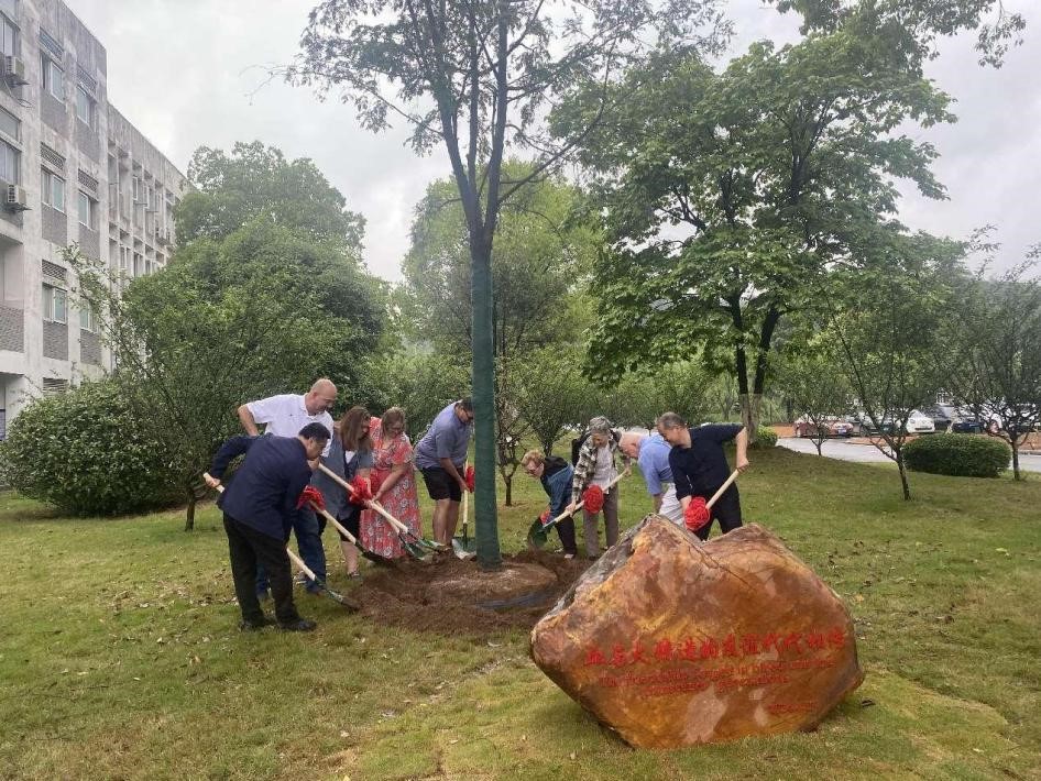 Chinese and Americans committed to China-U.S. friendship plant a tree of friendship at Jiangshan Middle School in Quzhou, east China's Zhejiang province. (People's Daily/Bai Ziwei)