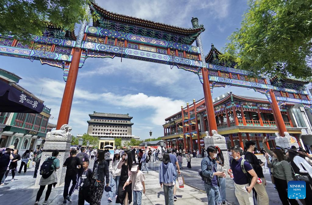 Tourists visit the Qianmen commercial district in Beijing, capital of China, May 1, 2024. (Xinhua/Li Xin)