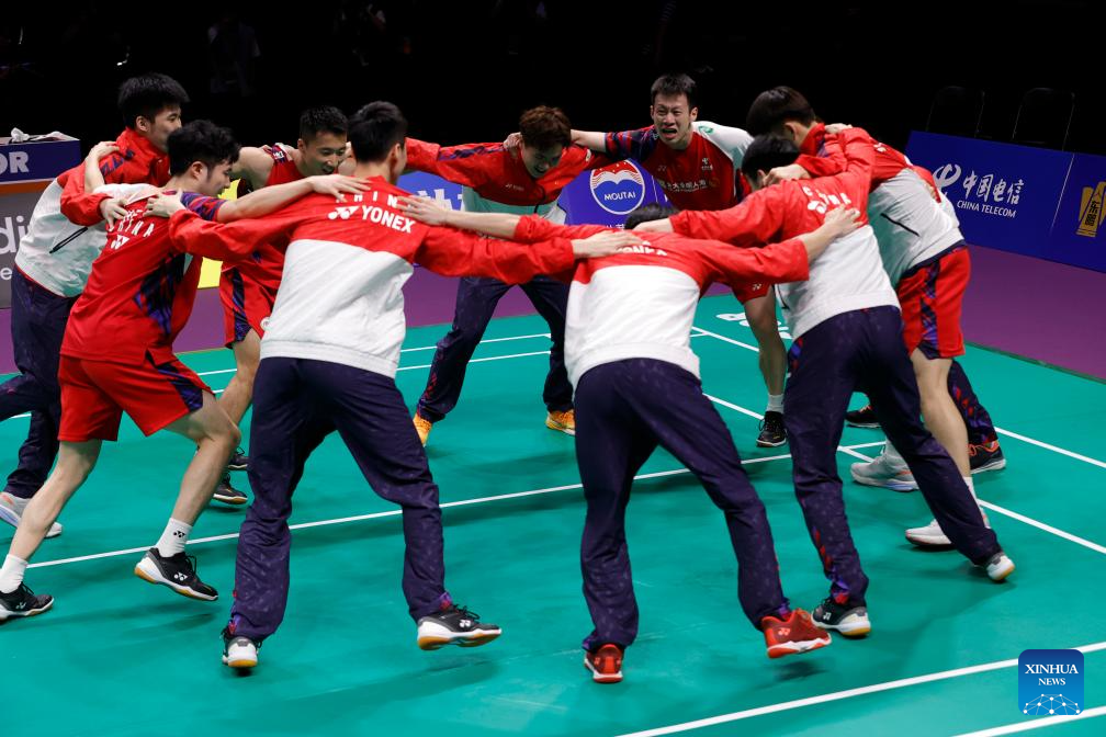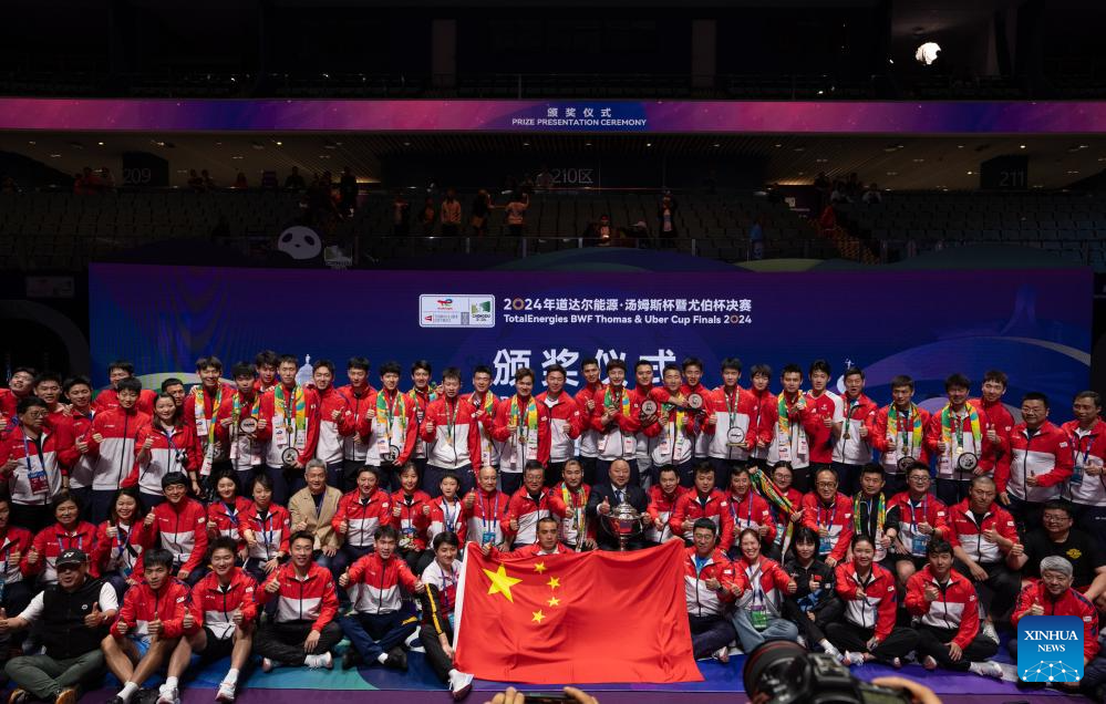 CHENGDU, China, May 5 (Xinhua) -- China's men's team reclaimed badminton's Thomas Cup after a six-year wait after beating Indonesia 3-1, while the women's team also regained the Uber Cup for the first time since 2020 after whitewashing Indonesia 3-0 here on Sunday.