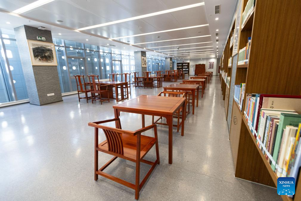 This photo taken on May 5, 2024 shows the library of the China Cultural Center in Belgrade, Serbia. The China Cultural Center in Belgrade, jointly built by China's Ministry of Culture and Tourism and the provincial government of Shandong, opened to the public recently. The center covers an area of 6,000 square meters and offers classes on Chinese language, traditional Chinese musical instruments, Chinese calligraphy, and Tai Chi. (Xinhua/Li Jing)