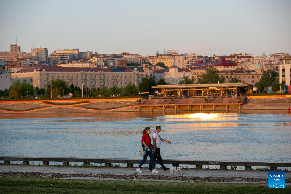 People take a walk near the Sava River in Belgrade, Serbia, May 5, 2024. (Xinhua/Li Jing)