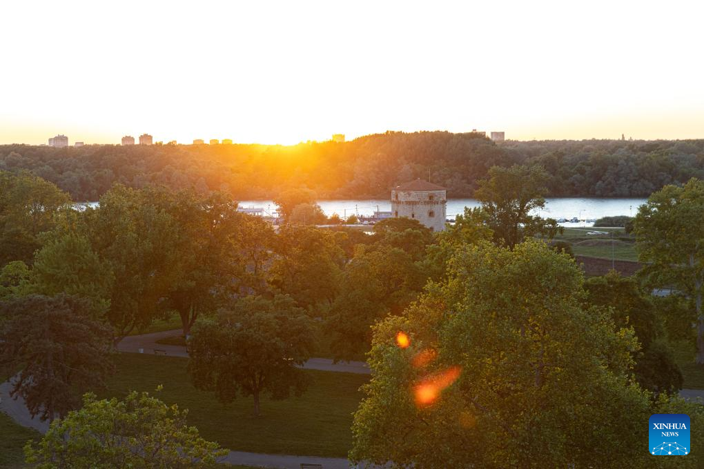 This photo taken on April 30, 2024 shows a view at sunset, seen from Kalemegdan Park in Belgrade, Serbia. (Xinhua/Li Jing)