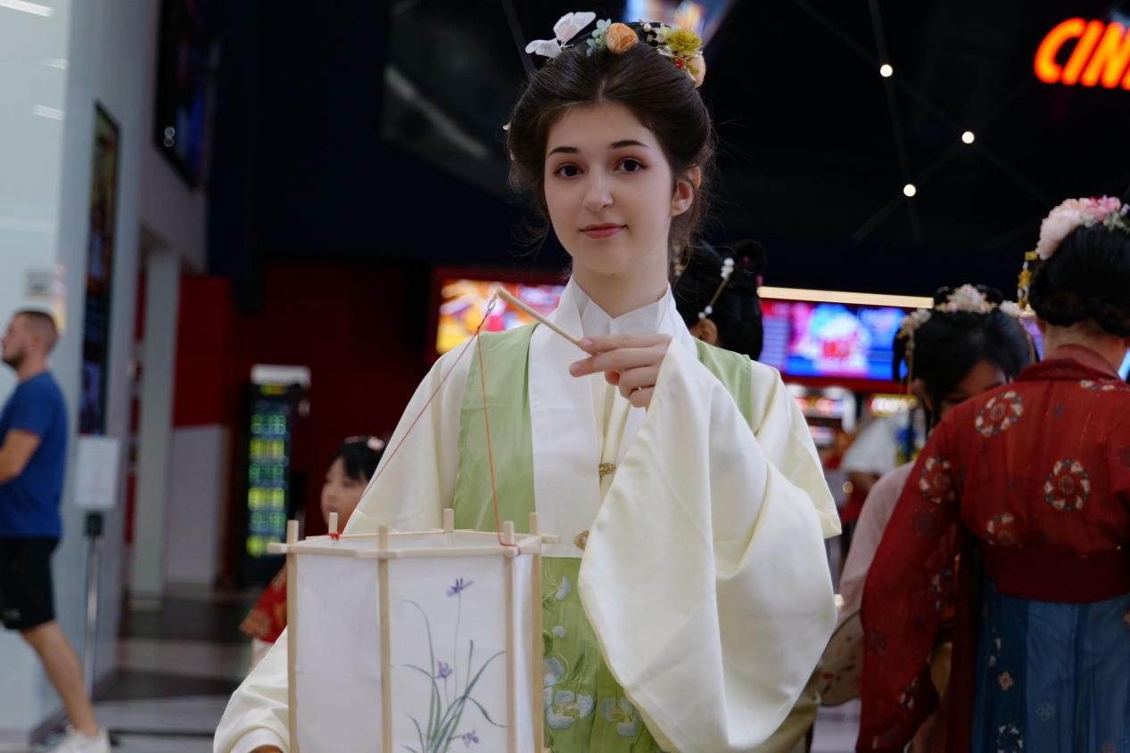 A student wearing traditional Chinese costume poses for a picture at the first traditional Chinese clothing festival held by the Confucius Institute at the University of Novi Sad in Serbia, in September 2023. (Photo courtesy of the Confucius Institute at the University of Novi Sa)