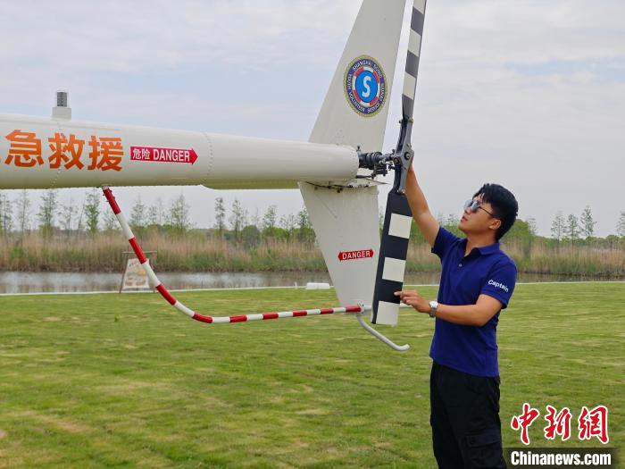 At a helicopter base in Jiaxing city, Zhejiang Province, a red and stylish helicopter slowly took off under the command of a ground crew member.