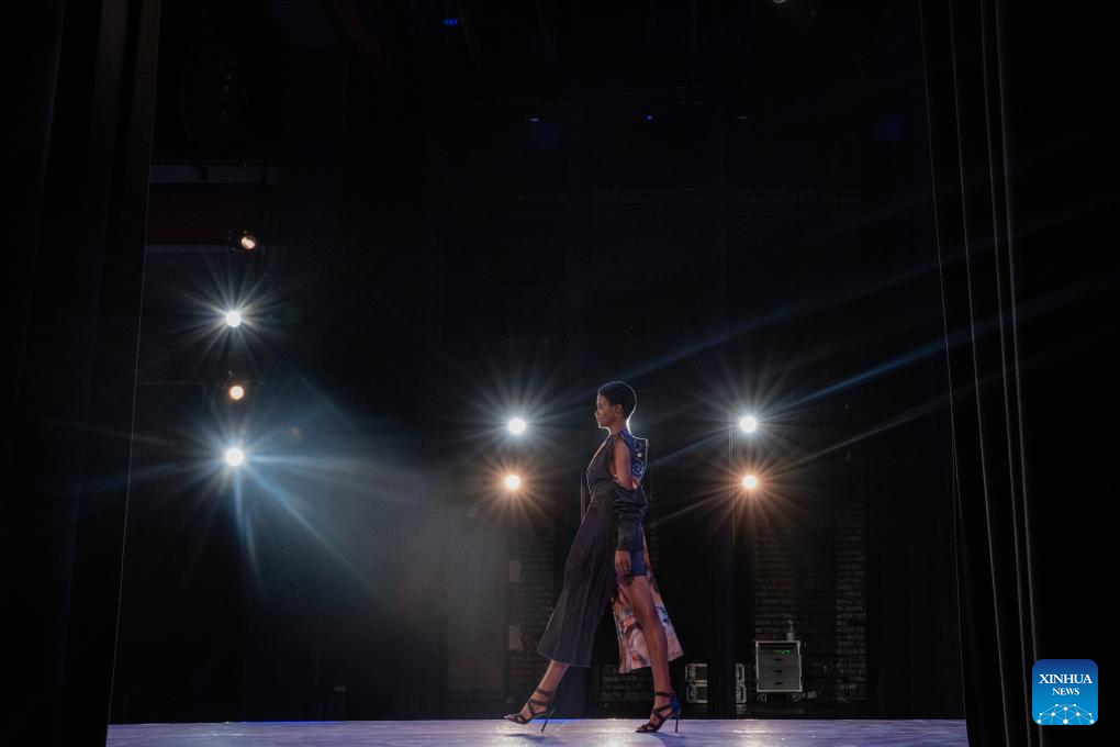 A model presents a creation at Soweto Fashion Week in Soweto, Johannesburg, South Africa, on May 8, 2024. (Photo by Ihsaan Haffejee/Xinhua)