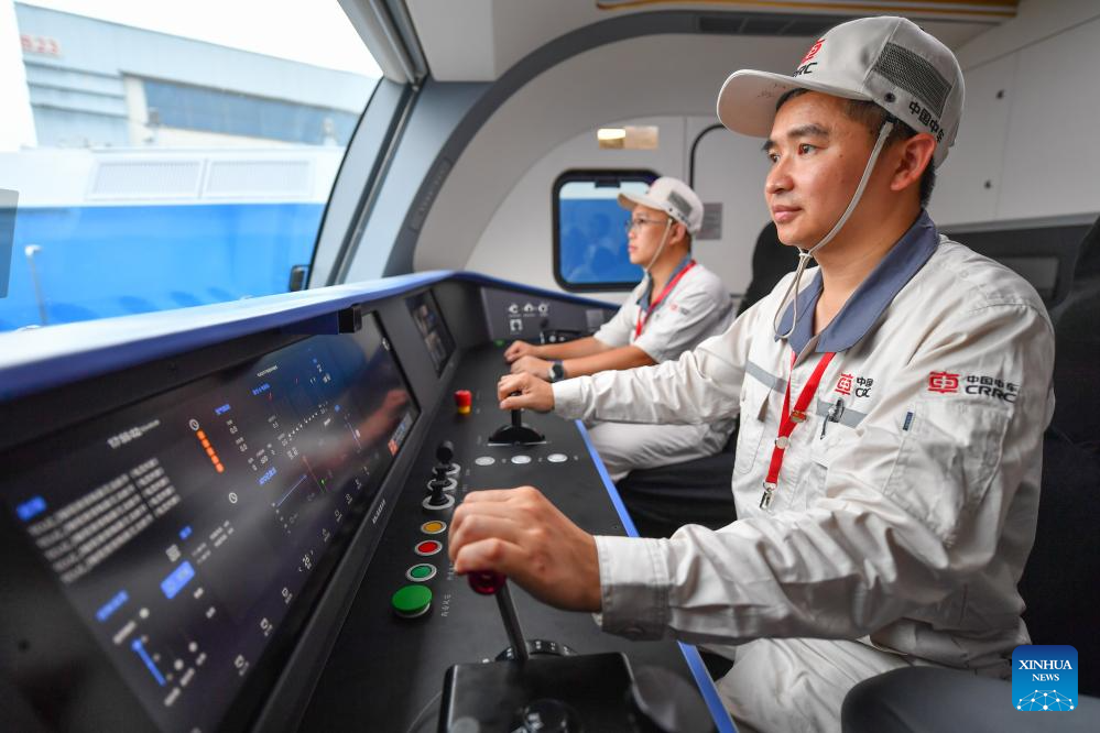 This photo shows the driving cabin of an intelligent heavy-haul electric locomotive in Zhuzhou, central China's Hunan Province, May 9, 2024. An intelligent heavy-haul electric locomotive officially rolled off the production line in Zhuzhou on Thursday. It will be used in the heavy-haul transportation of Shuozhou-Huanghua Railway, China's second-largest channel for coal transport. (Xinhua/Chen Zeguo)