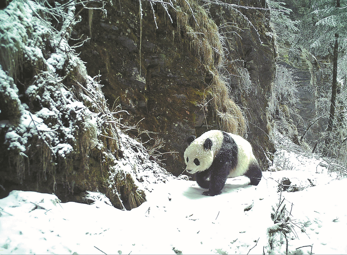 A wild giant panda is photographed in Beichuan, Sichuan province, last year. [Photo/Xinhua]
