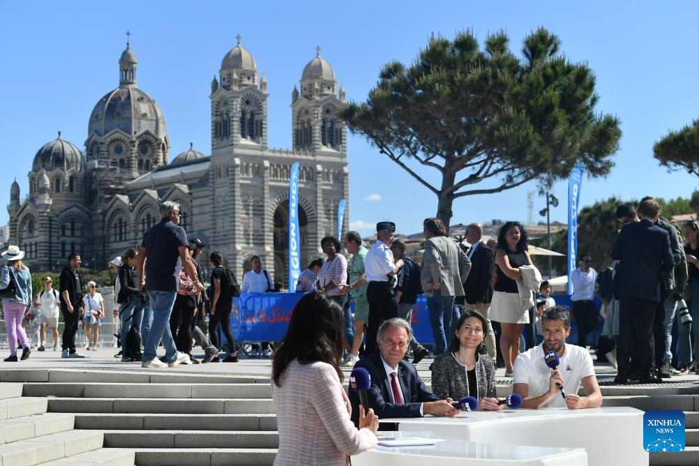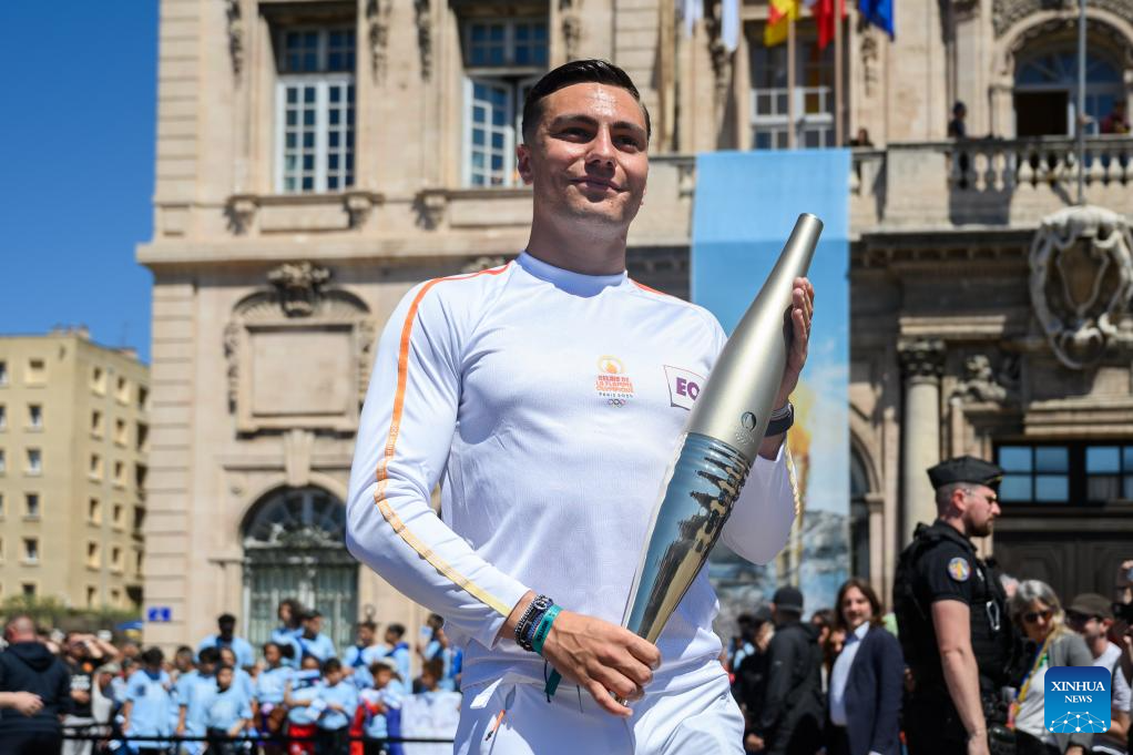 MARSEILLE, France, May 9 (Xinhua) -- Following the arrival of the Olympic torch at the Vieux Port the day before, the relay kicked off its first stop on French soil in Marseille on Thursday which was imbued with elements of football club Olympique de Marseille.