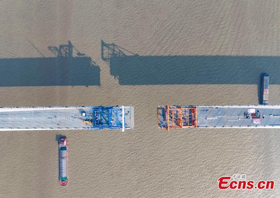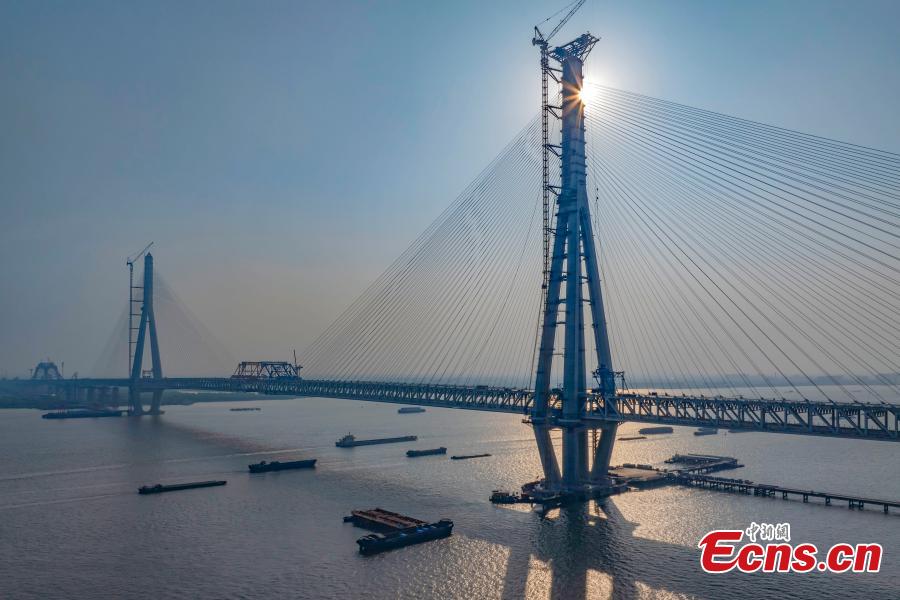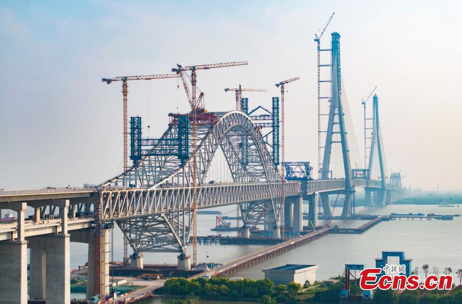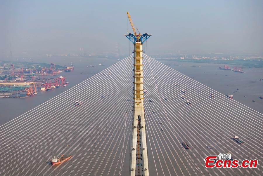 The construction site of the Changtai Yangtze River Bridge in Changzhou, east China's Jiangsu Province, May 10, 2024. (Photo: China News Service/Yang Bo)